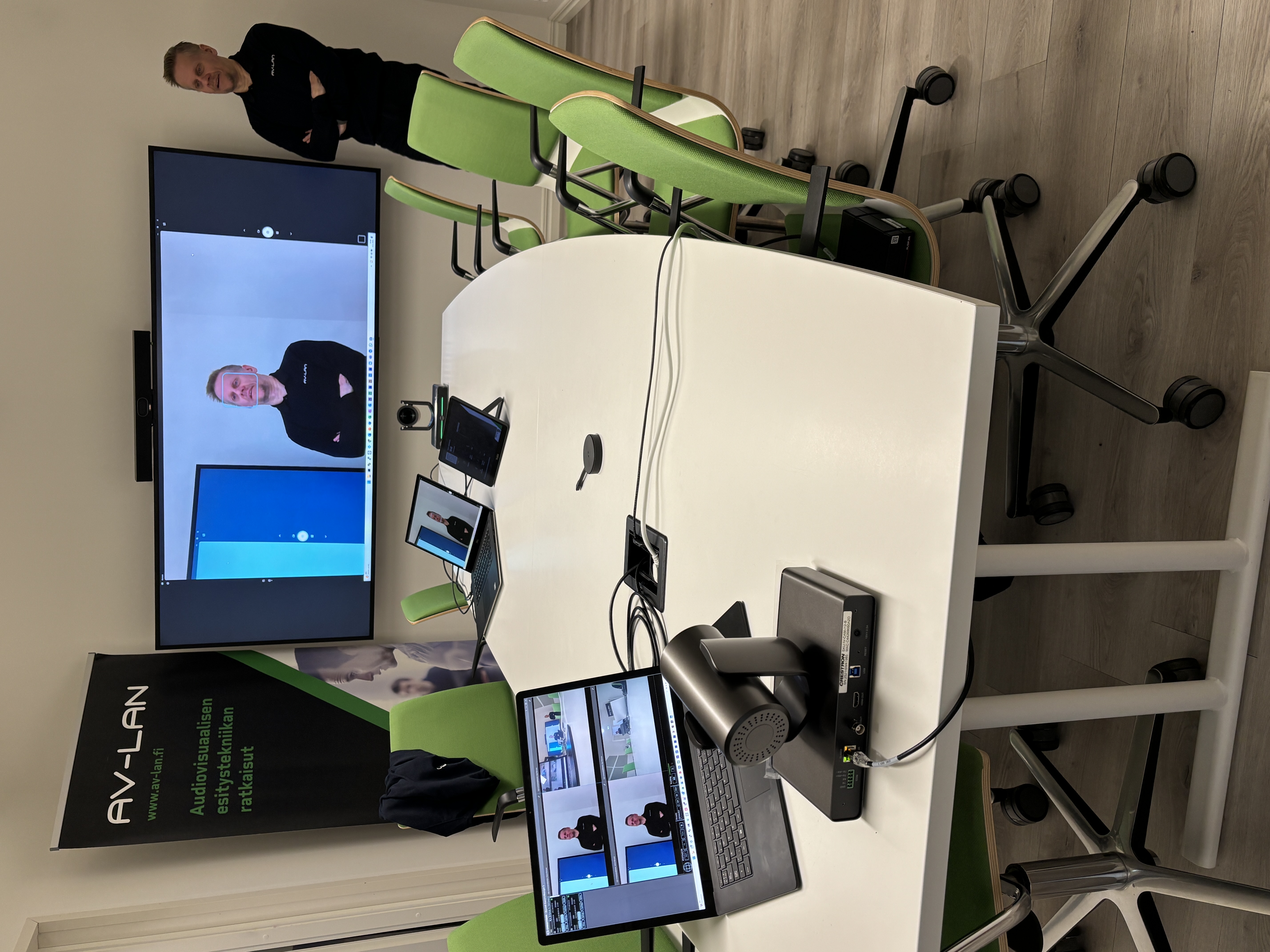 AV-Lan toteutti asiakkaalle Crestron 1 BEYOND kameraratkaisun kahdella erillisellä kameralla. Crestronin etuja verrattuna edullisempiin ratkaisuihin on mm. erinomainen kuvanlaatu. Tämä takaa sen, että kamerasta kauempana istuvat näkyvät selkeästi ja yksityiskohdat erottuvat myös laajassa huoneessa. Toteutuksessamme oli kaksi Crestronin 1 BEYOND kameraa, joissa toinen toimi niin sanottuna pääkamerana ja toinen ”tukikamerana”.