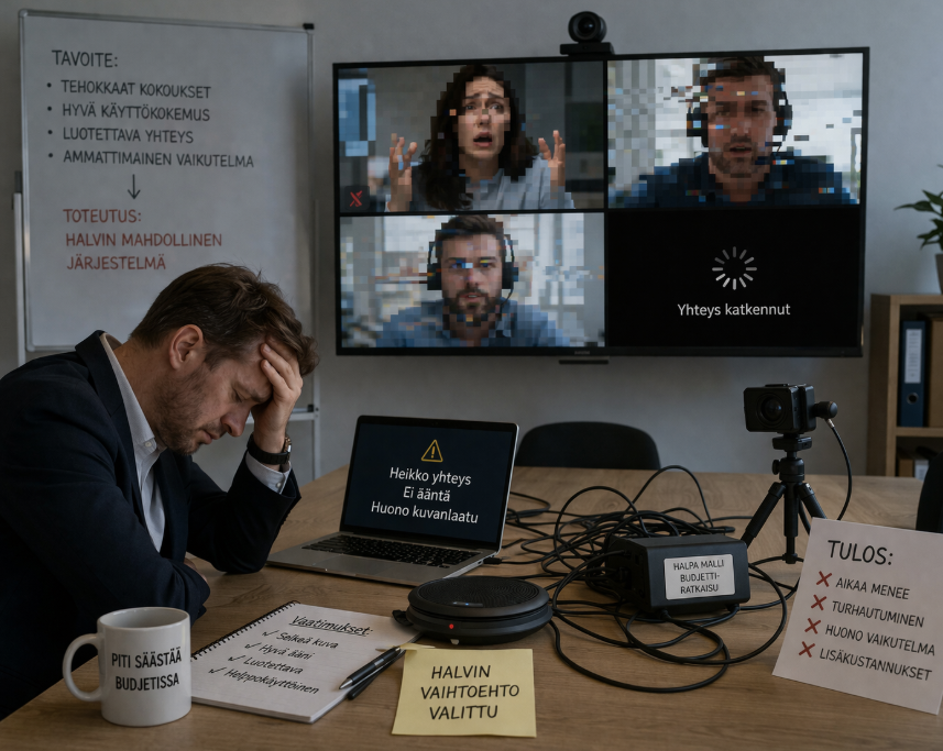 Mutta mikä on oikeasti edullisin tapa rakentaa toimiva neuvottelutila? Se ei ole halvin laite, vaan toimintavarmin kokonaisuus.